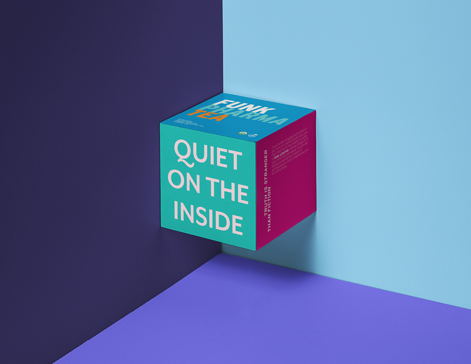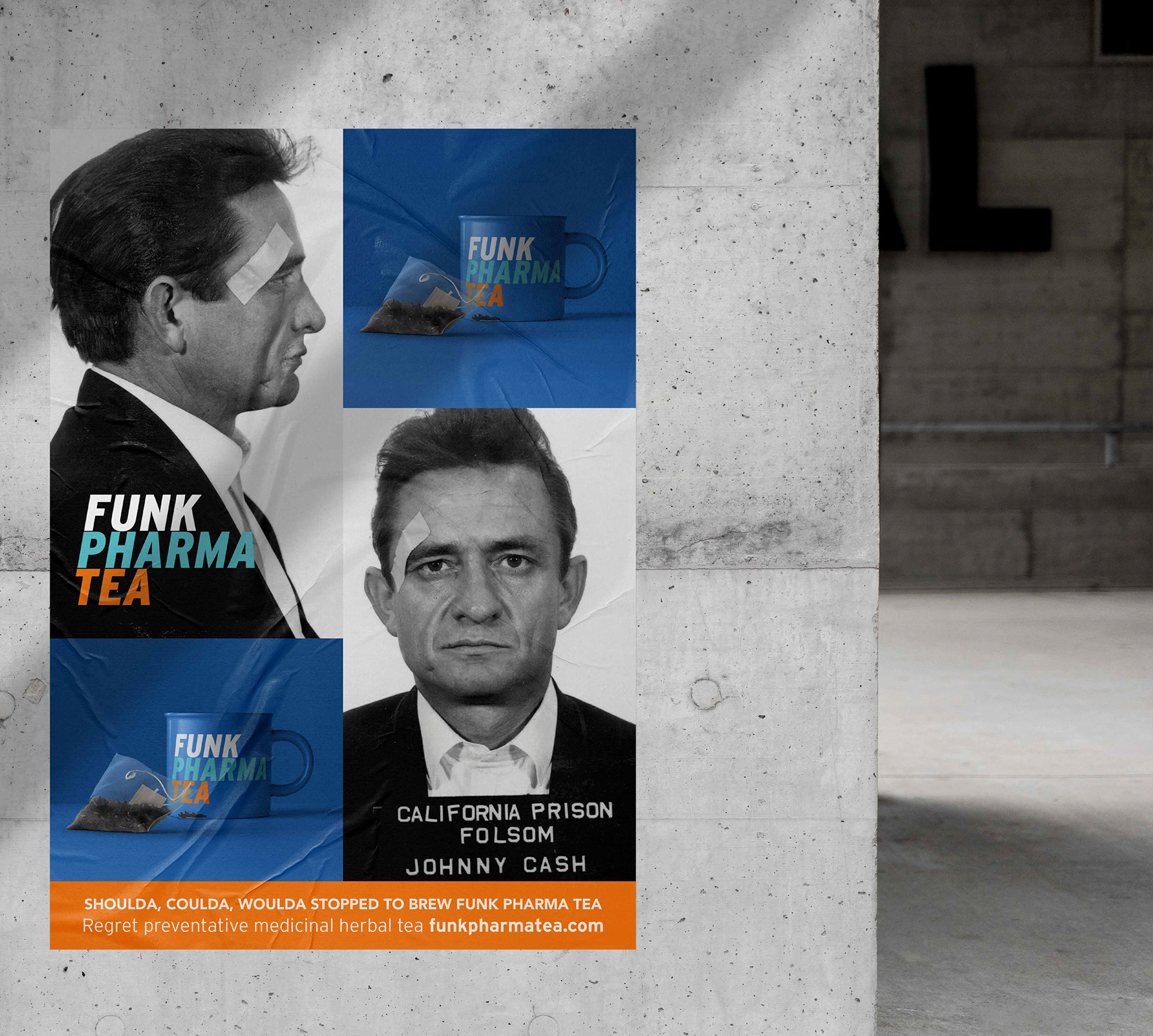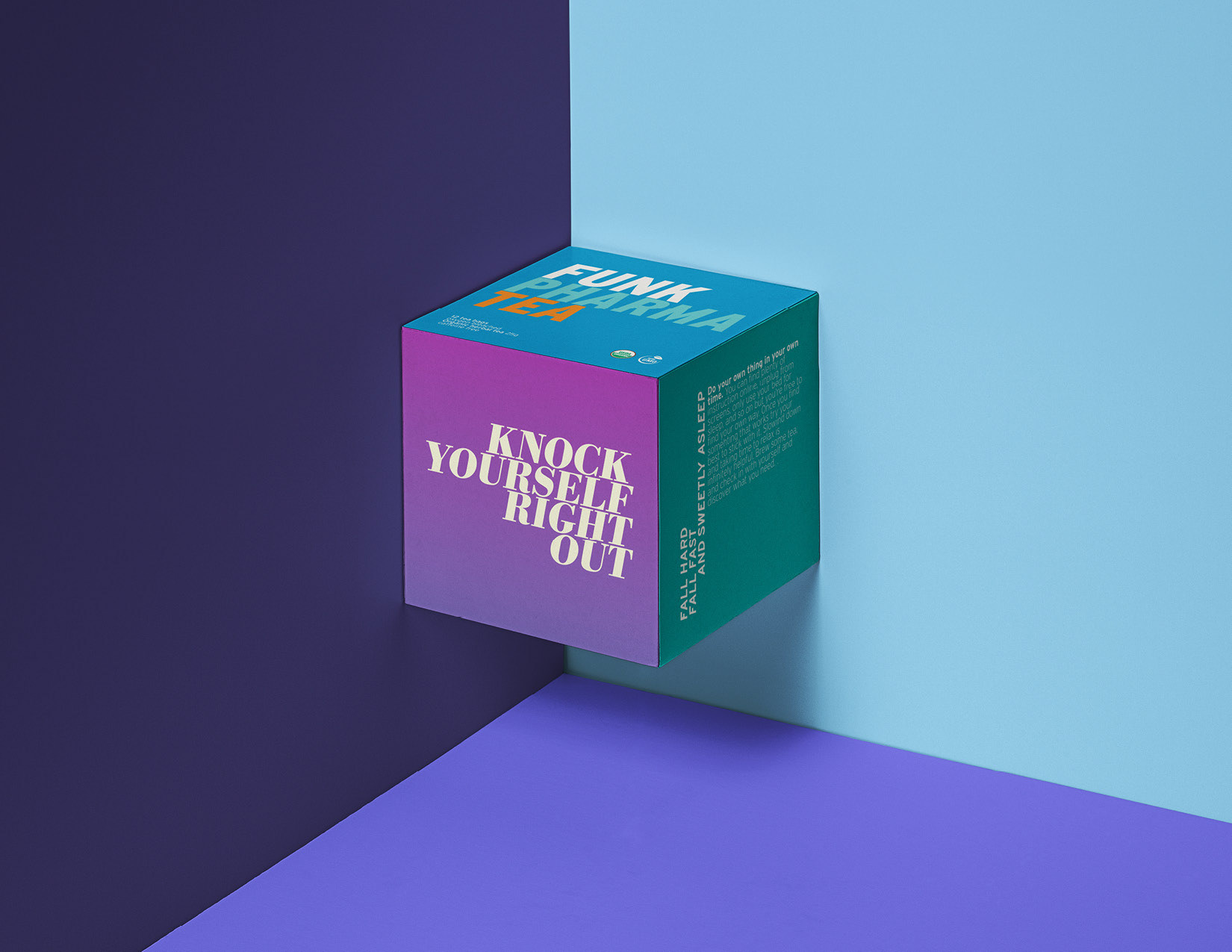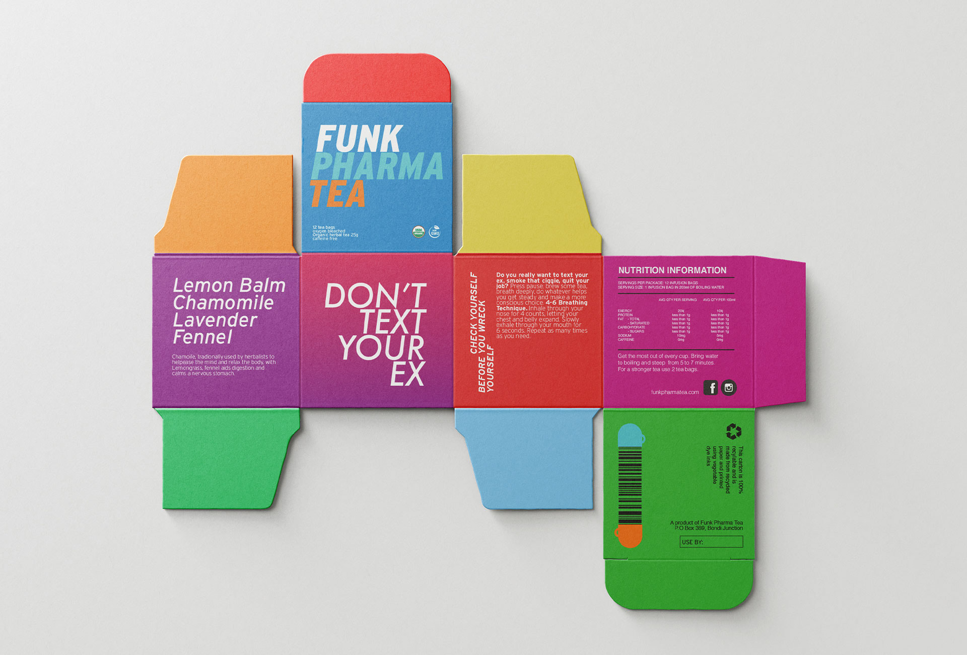 Branding and packaging design for the herbal tea company Funk Pharma Tea. Branding, logo design, package design, art direction, typography, copywriting.